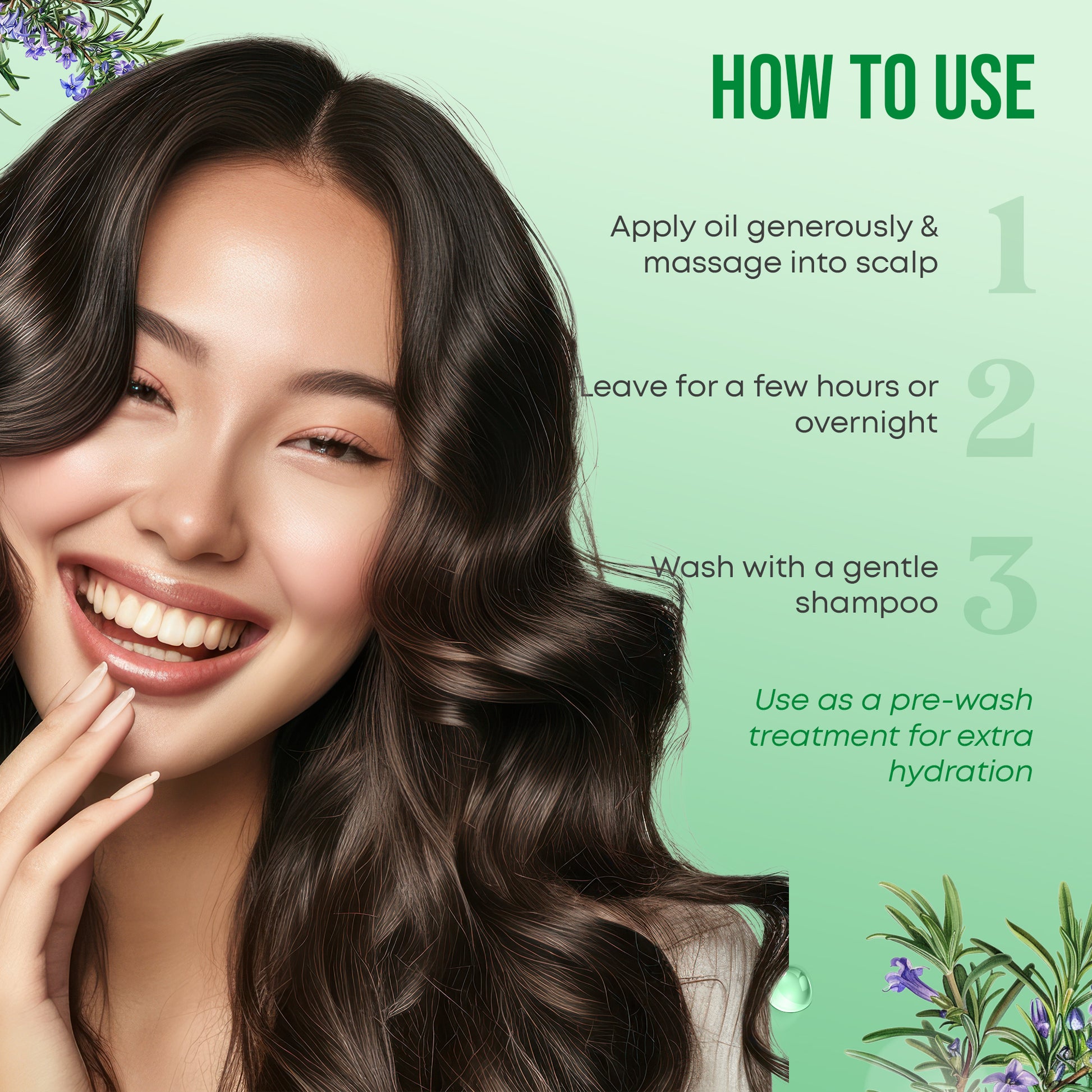 1️⃣ Hair Oil (200ml) – Rosemary, Jojoba & Sesame Oil infused, जो scalp को nourish करके hair growth और thickness बढ़ाता है।